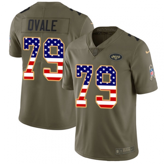 Home>NFL>New York Jets>Brent Qvale>Men's Nike New York Jets #79 Brent Qvale Limited Olive/USA Flag 2017 Salute to Service NFL Jersey