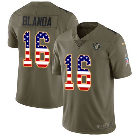 Home>NFL>Oakland Raiders>George Blanda>Men's Nike Oakland Raiders #16 George Blanda Limited Olive/USA Flag 2017 Salute to Service NFL Jersey