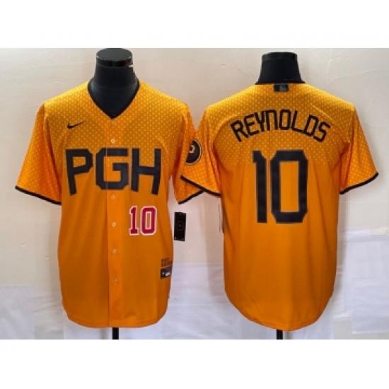Men's Nike Pittsburgh Pirates #10 Bryan Reynolds Gold 2023 City Connect Stitched Jersey 1