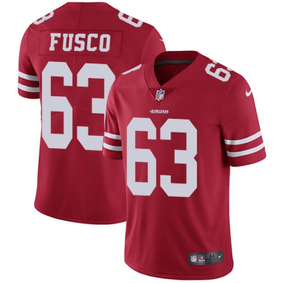 Home>NFL>San Francisco 49ers>Brandon Fusco>Men's Nike San Francisco 49ers #63 Brandon Fusco Red Team Color Vapor Untouchable Limited Player NFL Jersey