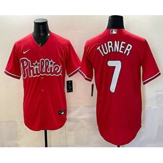 Men's Philadelphia Phillies #7 Trea Turner Red Cool Base Stitched Jersey