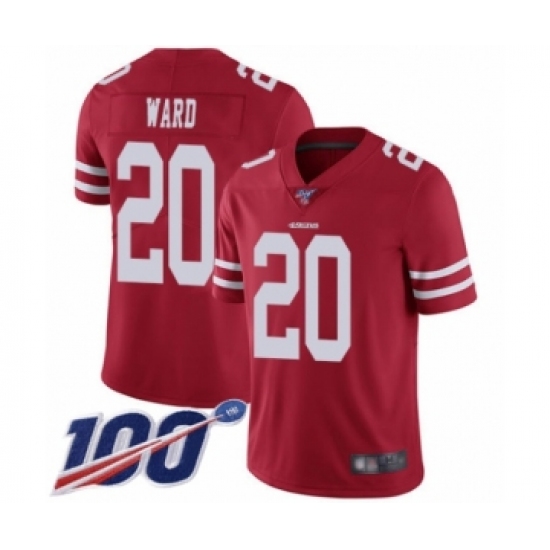 Men's San Francisco 49ers #20 Jimmie Ward Red Team Color Vapor Untouchable Limited Player 100th Season Football Jersey