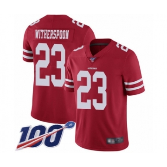 Men's San Francisco 49ers #23 Ahkello Witherspoon Red Team Color Vapor Untouchable Limited Player 100th Season Football Jersey