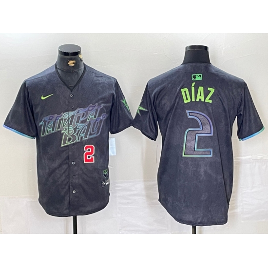 Men's Tampa Bay Rays #2 Yandy Diaz Number Charcoal 2024 City Connect Limited Stitched Jerseys