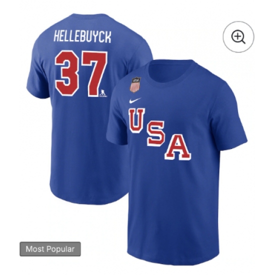 >Men's US Hockey USA Hockey #37 Connor Hellebuyck Royal 2026 Name & Number T-Shirt