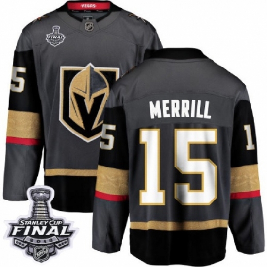 >Men's Vegas Golden Knights #15 Jon Merrill Authentic Black Home Fanatics Branded Breakaway 2018 Stanley Cup Final NHL Jersey