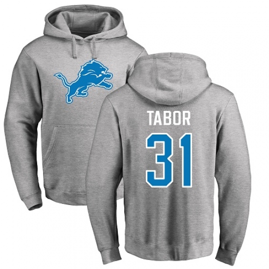NFL Nike Detroit Lions #31 Teez Tabor Ash Name & Number Logo Pullover Hoodie