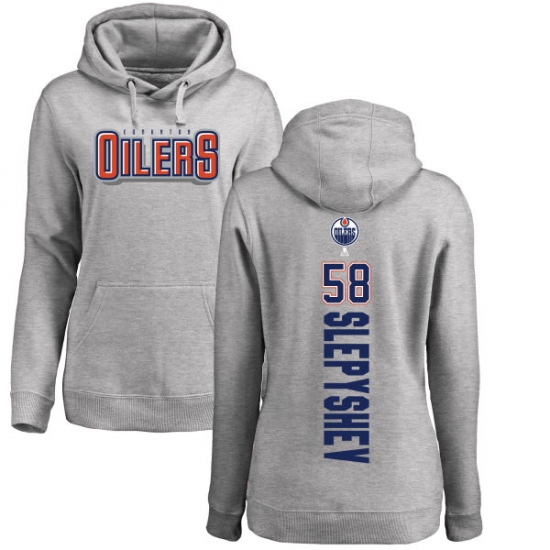 NHL Women's Adidas Edmonton Oilers #58 Anton Slepyshev Ash Backer Pullover Hoodie