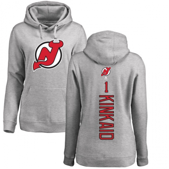 NHL Women's Adidas New Jersey Devils #1 Keith Kinkaid Ash Backer Pullover Hoodie