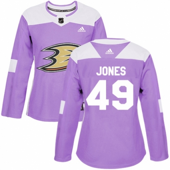 Women's Adidas Anaheim Ducks #49 Max Jones Authentic Purple Fights Cancer Practice NHL Jersey