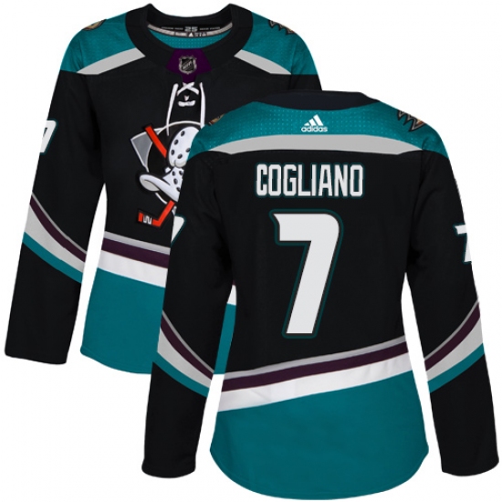 >Women's Adidas Anaheim Ducks #7 Andrew Cogliano Authentic Black Teal Third NHL Jersey