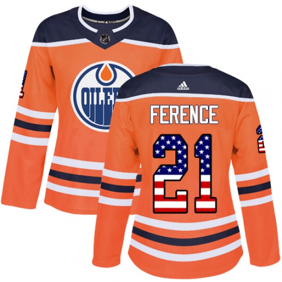 Home>NHL>Edmonton Oilers>Andrew Ference>Women's Adidas Edmonton Oilers #21 Andrew Ference Authentic Orange USA Flag Fashion NHL Jersey