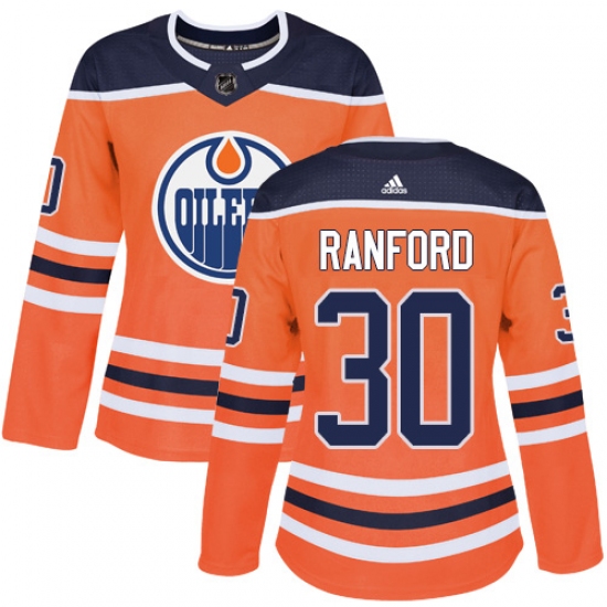 Home>NHL>Edmonton Oilers>Bill Ranford>Women's Adidas Edmonton Oilers #30 Bill Ranford Authentic Orange Home NHL Jersey