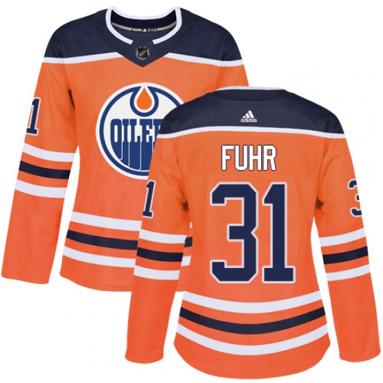 Women's Adidas Edmonton Oilers #31 Grant Fuhr Authentic Orange Home NHL Jersey