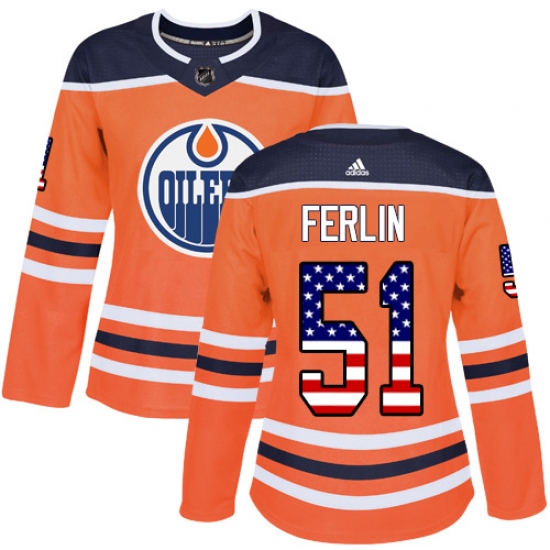 Home>NHL>Edmonton Oilers>Brian Ferlin>Women's Adidas Edmonton Oilers #51 Brian Ferlin Authentic Orange USA Flag Fashion NHL Jersey