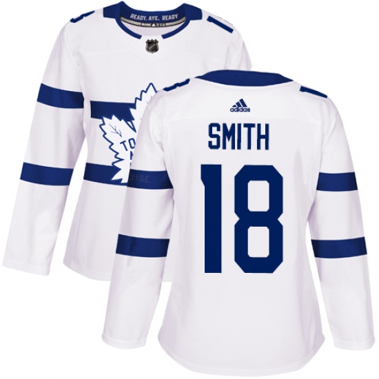 Home>NHL>Toronto Maple Leafs>Ben Smith>Women's Adidas Toronto Maple Leafs #18 Ben Smith Authentic White 2018 Stadium Series NHL Jersey