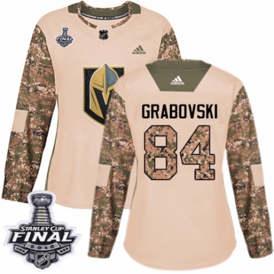 Women's Adidas Vegas Golden Knights #84 Mikhail Grabovski Authentic Camo Veterans Day Practice 2018 Stanley Cup Final NHL Jersey