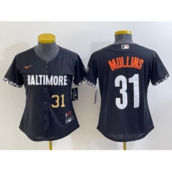>Women's Baltimore Orioles #31 Cedric Mullins Number Black 2023 City Connect Cool Base Stitched Jersey