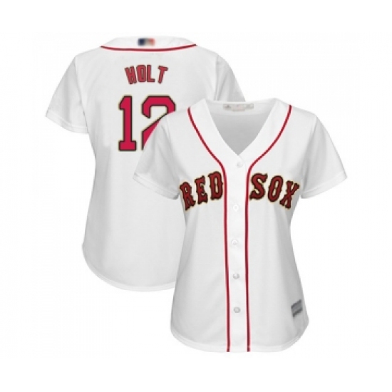 Women's Boston Red Sox #12 Brock Holt Authentic White 2019 Gold Program Cool Base Baseball Jersey
