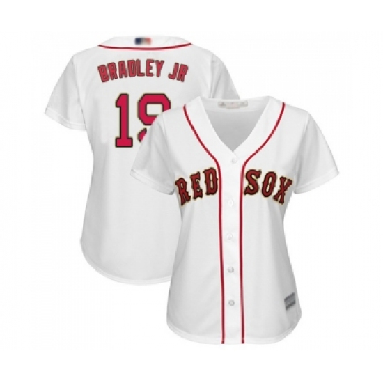 >Women's Boston Red Sox #19 Jackie Bradley Jr Authentic White 2019 Gold Program Cool Base Baseball Jersey