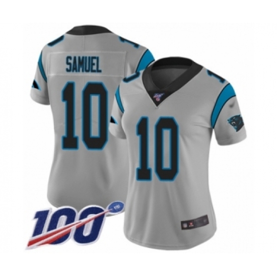 >Women's Carolina Panthers #10 Curtis Samuel Silver Inverted Legend Limited 100th Season Football Jersey