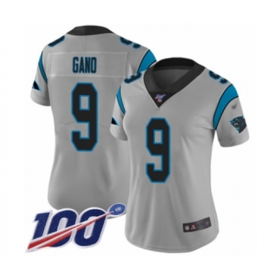 >Women's Carolina Panthers #9 Graham Gano Silver Inverted Legend Limited 100th Season Football Jersey