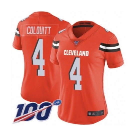 Women's Cleveland Browns #4 Britton Colquitt Orange Alternate Vapor Untouchable Limited Player 100th Season Football Jersey