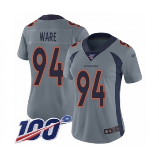 >Women's Denver Broncos #94 DeMarcus Ware Limited Silver Inverted Legend 100th Season Football Jersey