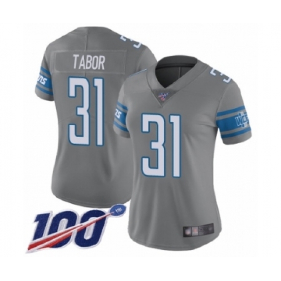 Women's Detroit Lions #31 Teez Tabor Limited Steel Rush Vapor Untouchable 100th Season Football Jersey