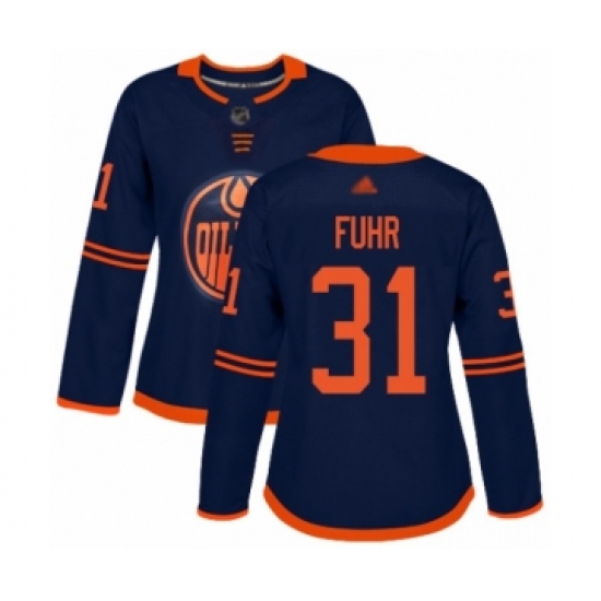 Women's Edmonton Oilers #31 Grant Fuhr Authentic Navy Blue Alternate Hockey Jersey