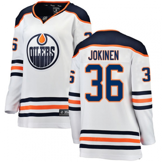 Home>NHL>Edmonton Oilers>Jussi Jokinen>Women's Edmonton Oilers #36 Jussi Jokinen Authentic White Away Fanatics Branded Breakaway NHL Jersey