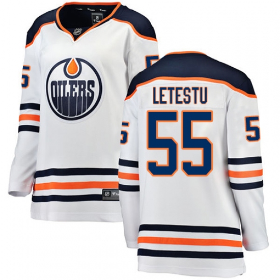 Home>NHL>Edmonton Oilers>Mark Letestu>Women's Edmonton Oilers #55 Mark Letestu Authentic White Away Fanatics Branded Breakaway NHL Jersey