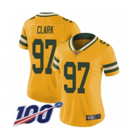 >Women's Green Bay Packers #97 Kenny Clark Limited Gold Rush Vapor Untouchable 100th Season Football Jersey
