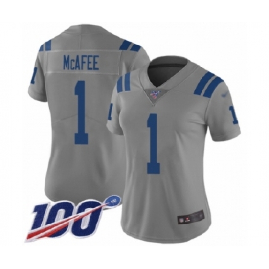>Women's Indianapolis Colts #1 Pat McAfee Limited Gray Inverted Legend 100th Season Football Jersey