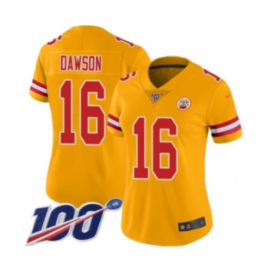 >Women's Kansas City Chiefs #16 Len Dawson Limited Gold Inverted Legend 100th Season Football Jersey