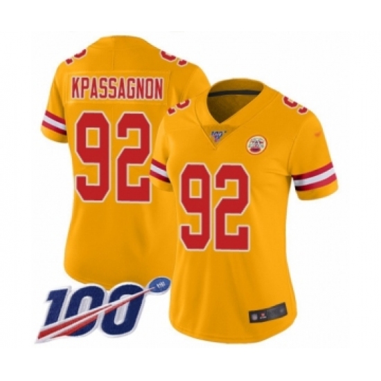 >Women's Kansas City Chiefs #92 Tanoh Kpassagnon Limited Gold Inverted Legend 100th Season Football Jersey