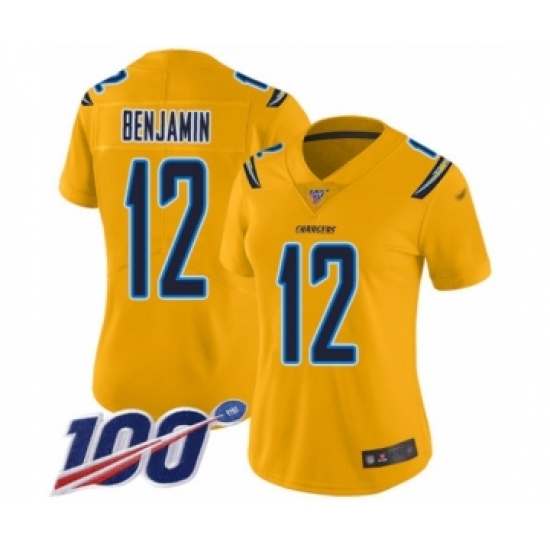 >Women's Los Angeles Chargers #12 Travis Benjamin Limited Gold Inverted Legend 100th Season Football Jersey