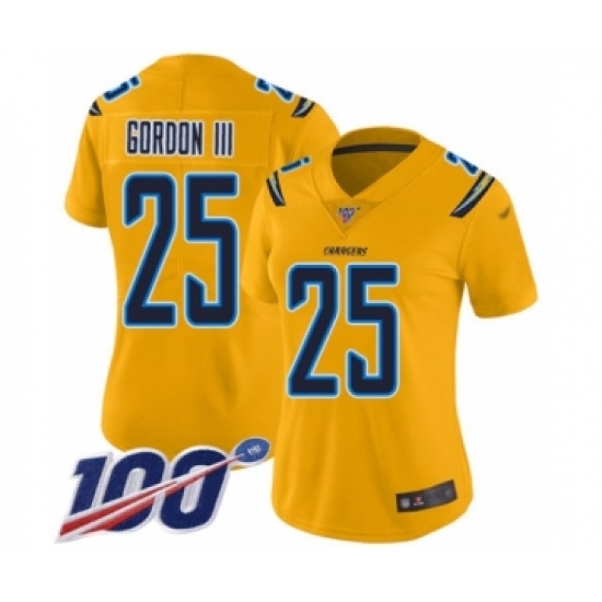 >Women's Los Angeles Chargers #25 Melvin Gordon Limited Gold Inverted Legend 100th Season Football Jersey