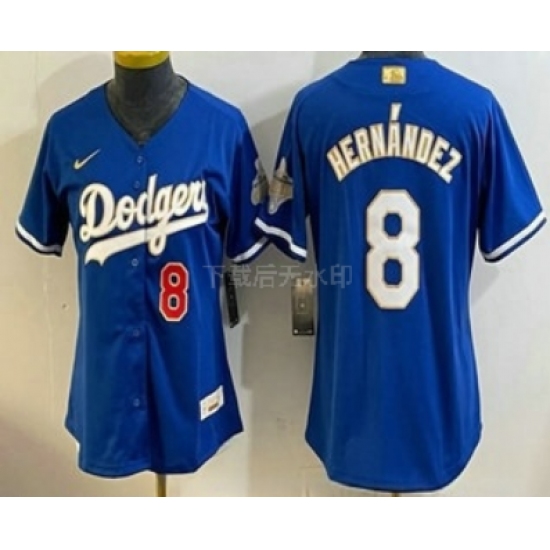 >Women's Los Angeles Dodgers #8 Enrique Hernandez Blue 2026 Gold Collection Stadium Jersey