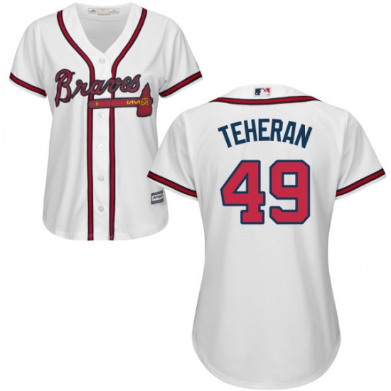Home>MLB>Atlanta Braves>Julio Teheran>Women's Majestic Atlanta Braves #49 Julio Teheran Authentic White Home Cool Base MLB Jersey
