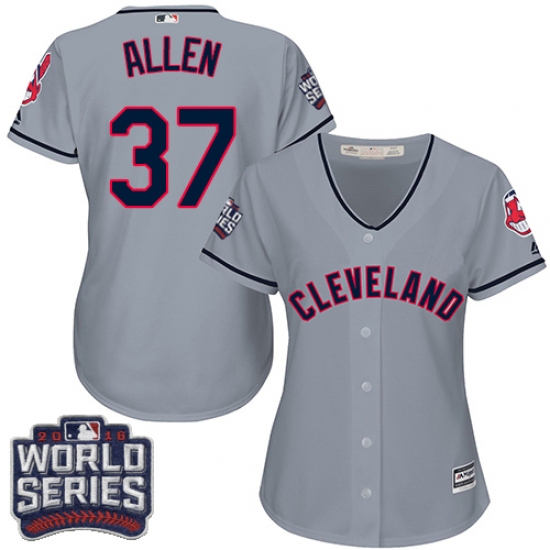 Women's Majestic Cleveland Indians #37 Cody Allen Authentic Grey Road 2016 World Series Bound Cool Base MLB Jersey