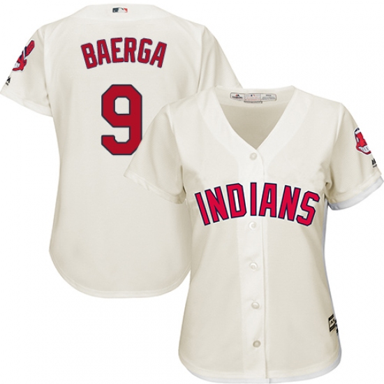 Women's Majestic Cleveland Indians #9 Carlos Baerga Replica Cream Alternate 2 Cool Base MLB Jersey