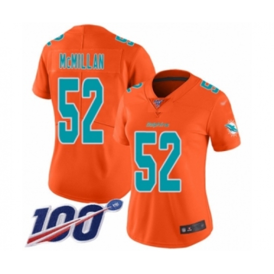 >Women's Miami Dolphins #52 Raekwon McMillan Limited Orange Inverted Legend 100th Season Football Jersey