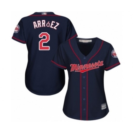 >Women's Minnesota Twins #2 Luis Arraez Authentic Navy Blue Alternate Road Cool Base Baseball Player Jersey