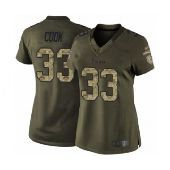 Women's Minnesota Vikings #33 Dalvin Cook Limited Green Salute to Service Football Jersey