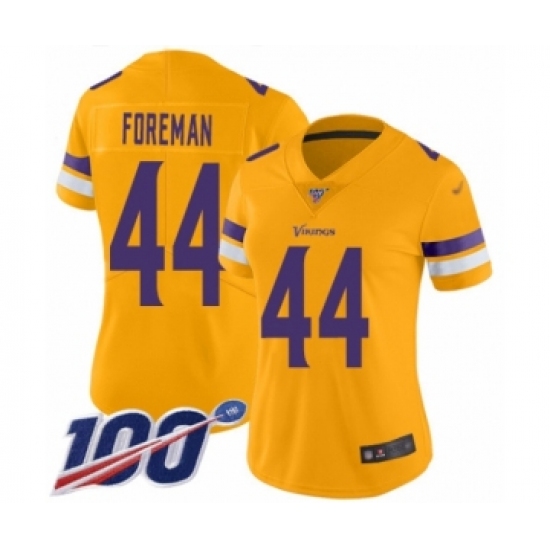 Women's Minnesota Vikings #44 Chuck Foreman Limited Gold Inverted Legend 100th Season Football Jersey