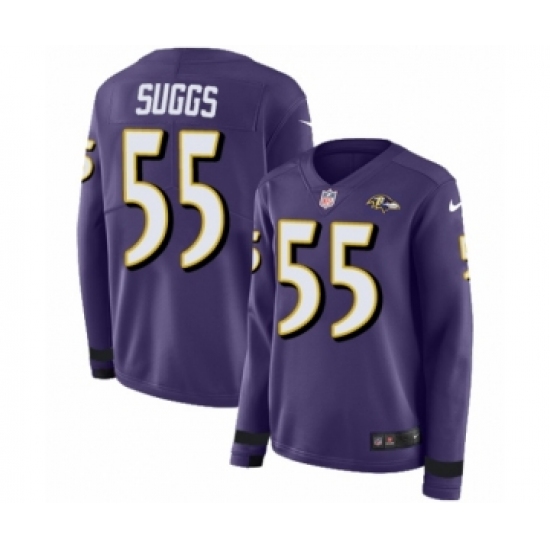 >Women's Nike Baltimore Ravens #55 Terrell Suggs Limited Purple Therma Long Sleeve NFL Jersey