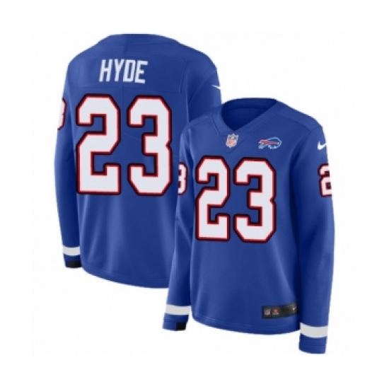 >Women's Nike Buffalo Bills #23 Micah Hyde Limited Royal Blue Therma Long Sleeve NFL Jersey