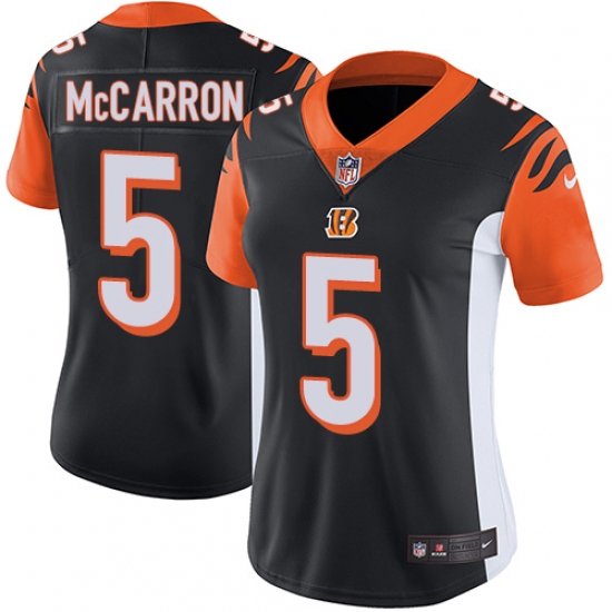 Women's Nike Cincinnati Bengals #5 AJ McCarron Vapor Untouchable Limited Black Team Color NFL Jersey