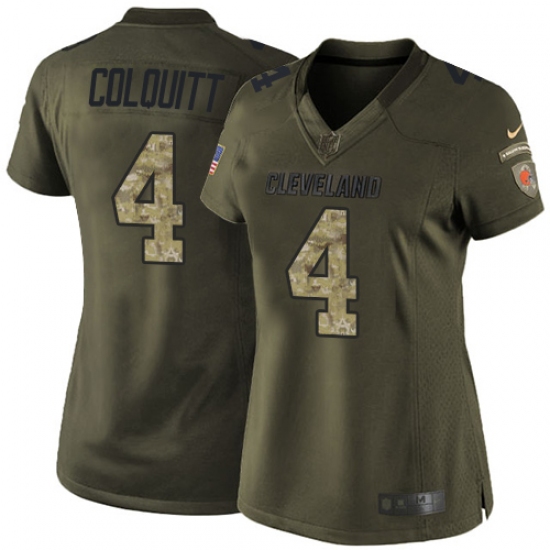 Home>NFL>Cleveland Browns>Britton Colquitt>Women's Nike Cleveland Browns #4 Britton Colquitt Elite Green Salute to Service NFL Jersey